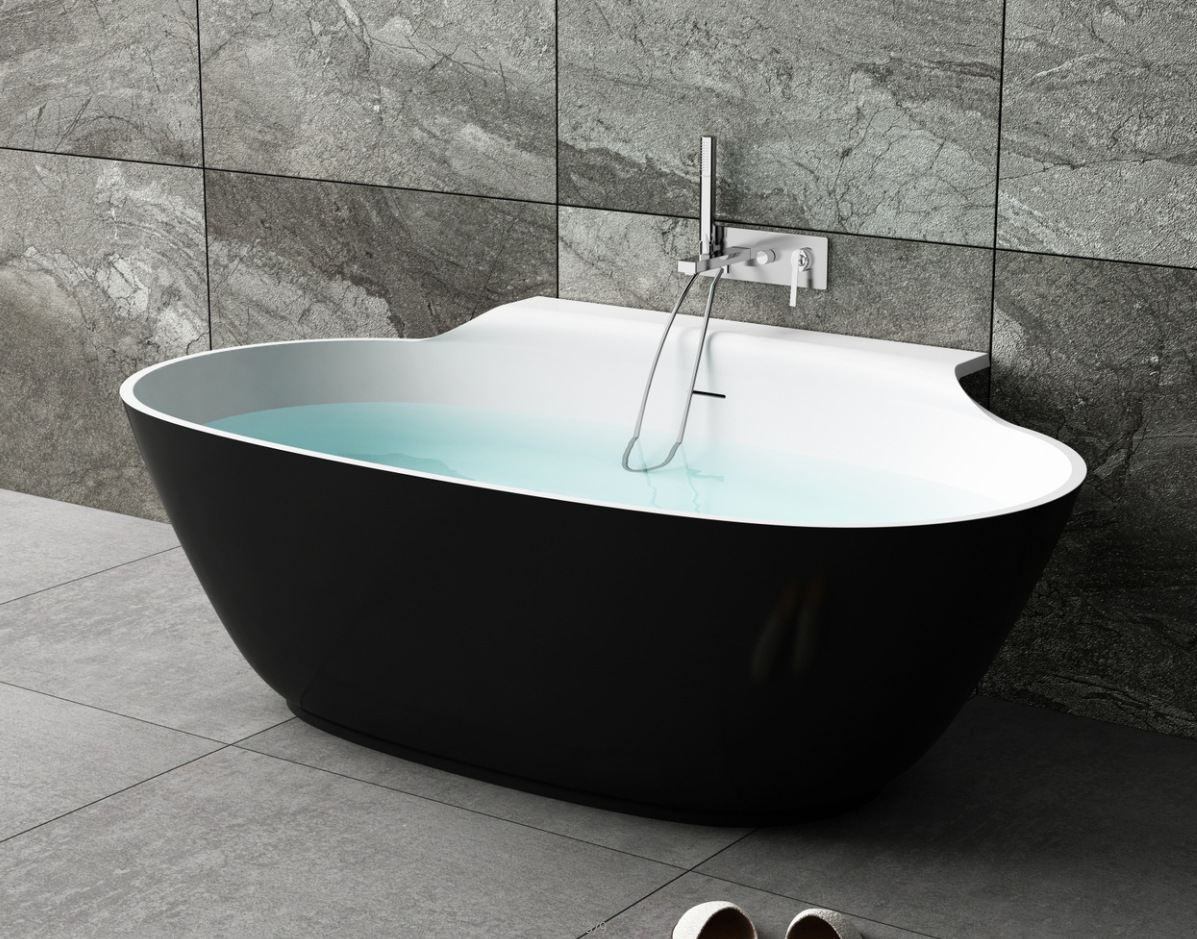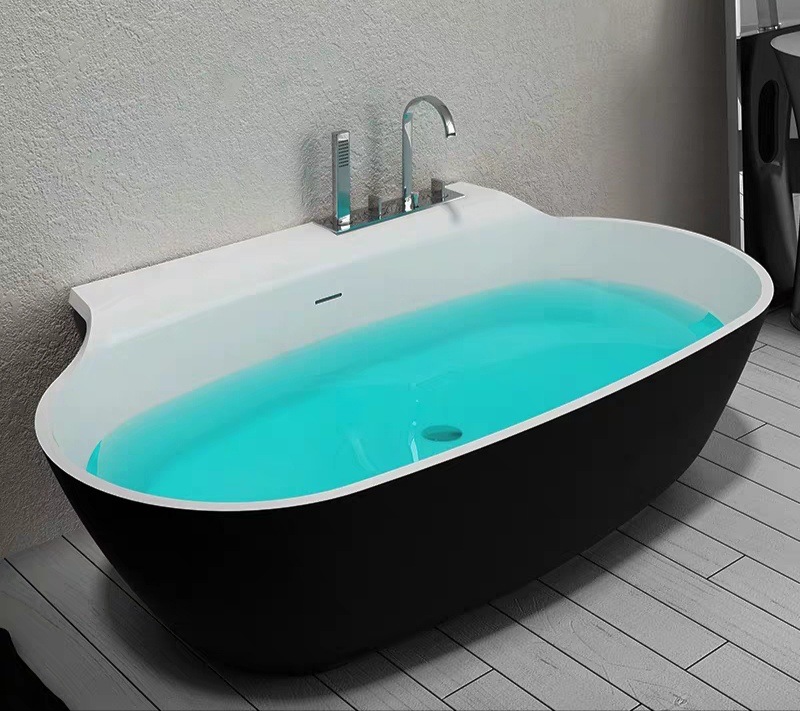 Modern back to wall white artificial stone resin solid surface tub factory black freestanding bathtub