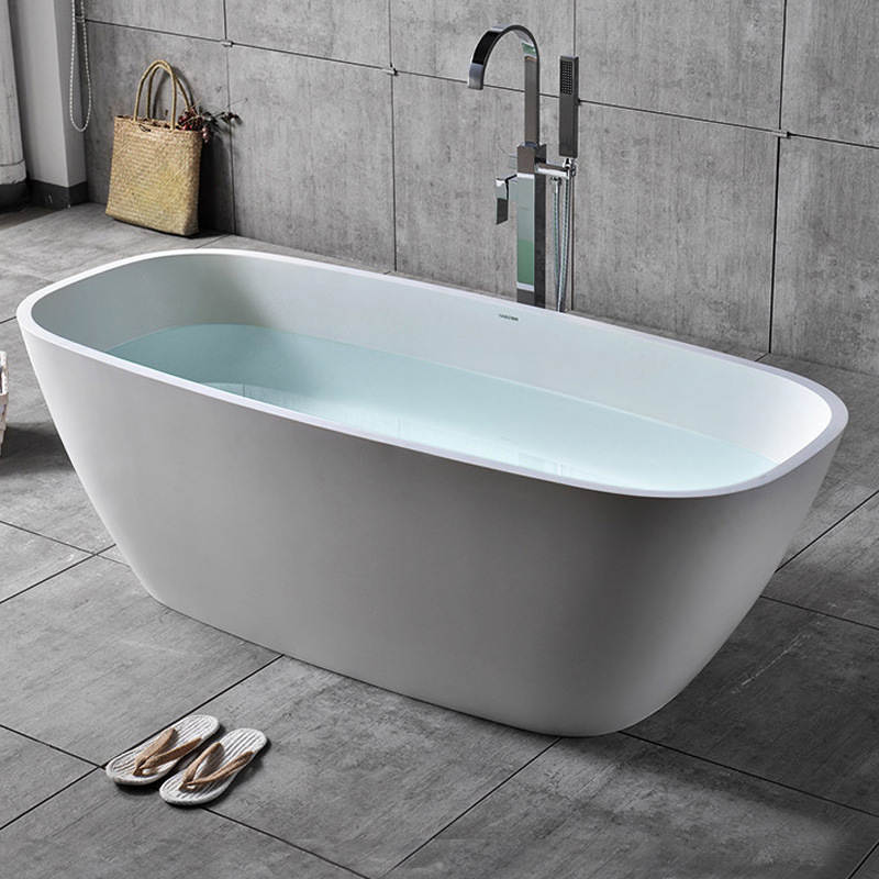 Indoor home bathroom adult soaking solid surface freestanding stone bathtub