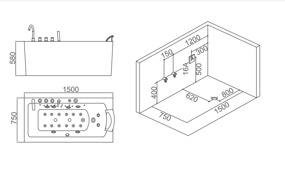 Function:Massage, Combo Massage whirlpool,air bubble,constant temperature,ozone,lights,bluetooth,music