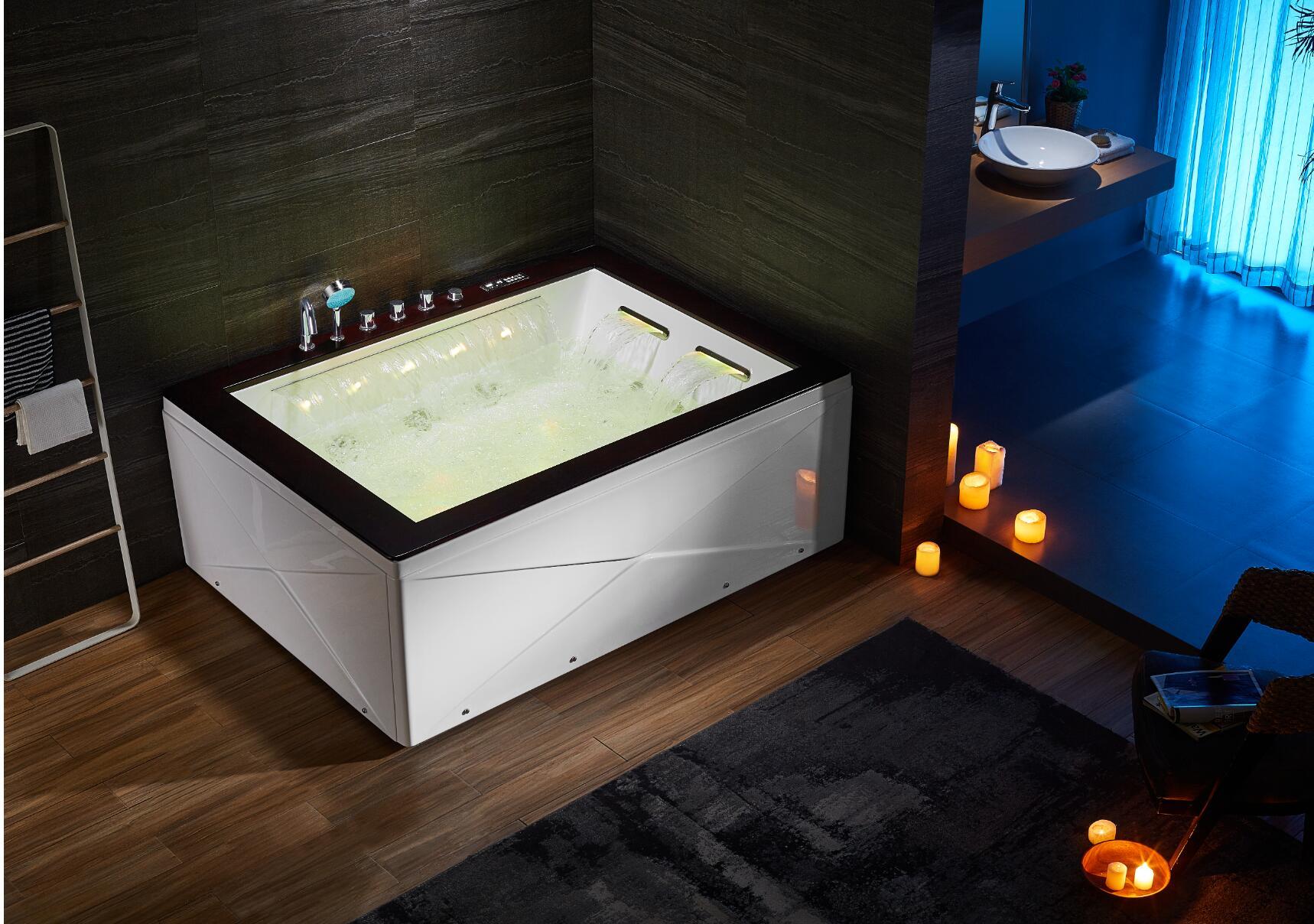 Luxury bathroom wooden bath whirlpool jet 2 person adult hydro massage bathtub with waterfalls
