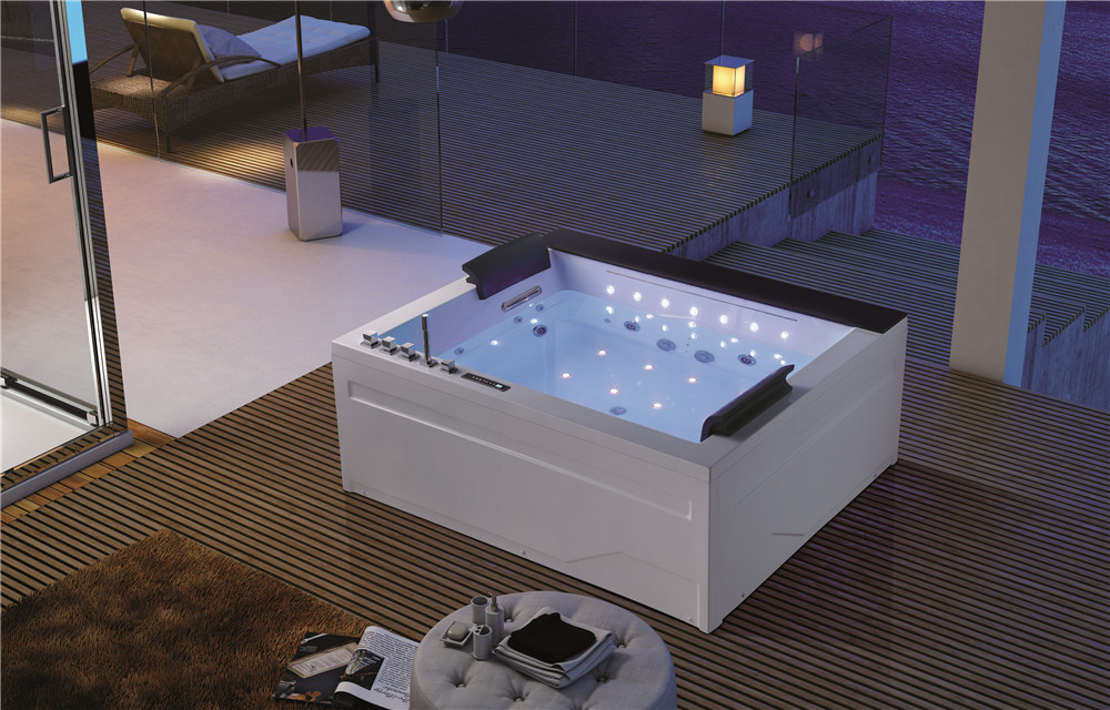 Acrylic 2 person air jetted spa whirlpool massage large space soaking bath tub for adults plastic