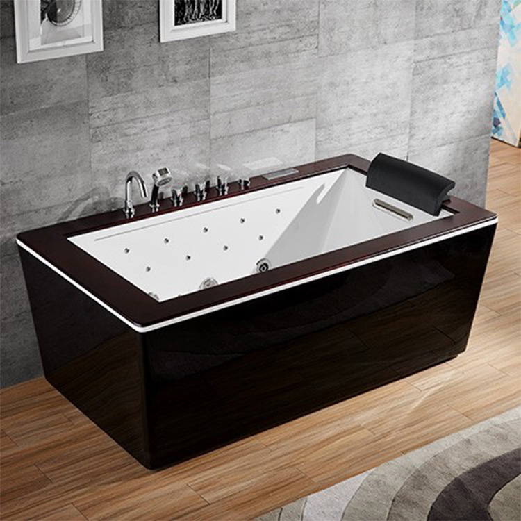 Acrylic wooden panel chromotherapy bath massage bathtub jacuzzi with skirt