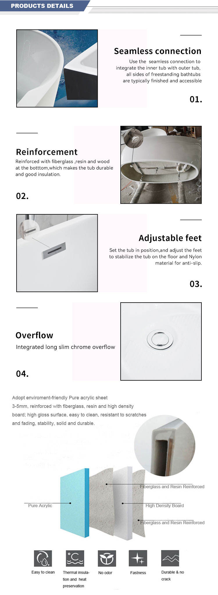 Material: Pure acrylic,reinforced with resin and fiberglass