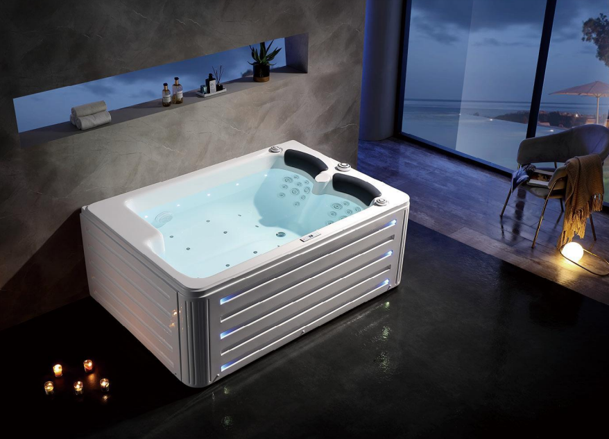Contemporary whirlpool 2 or 3 person air jetted spa bath lighted hydro massage acrylic adult large space bath tub