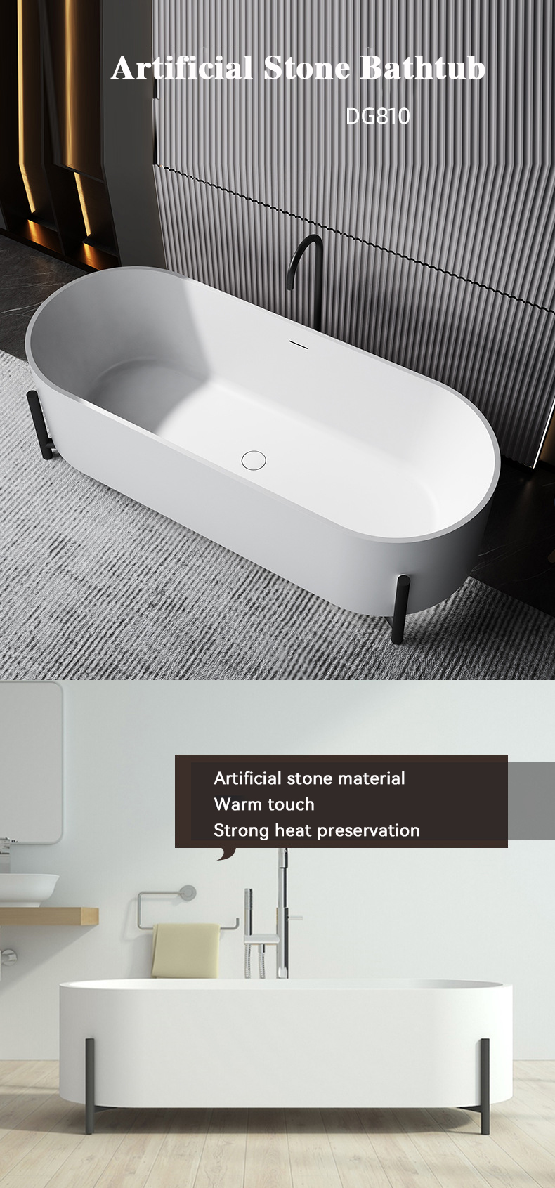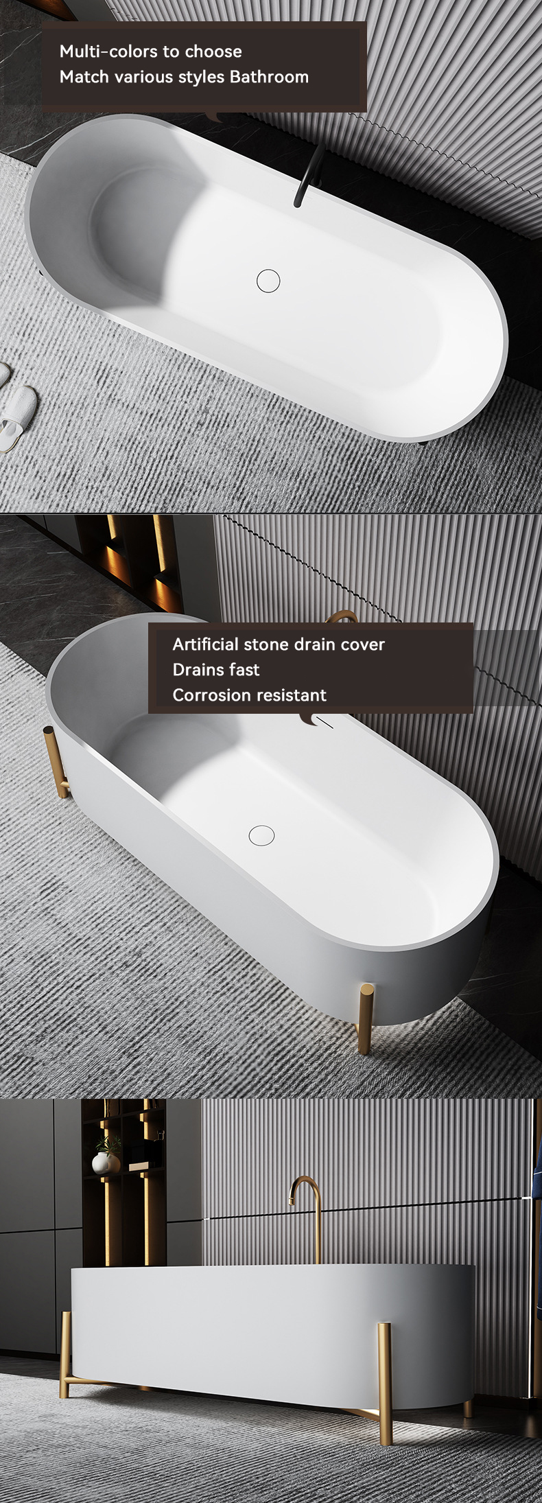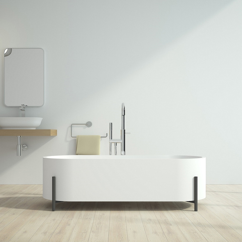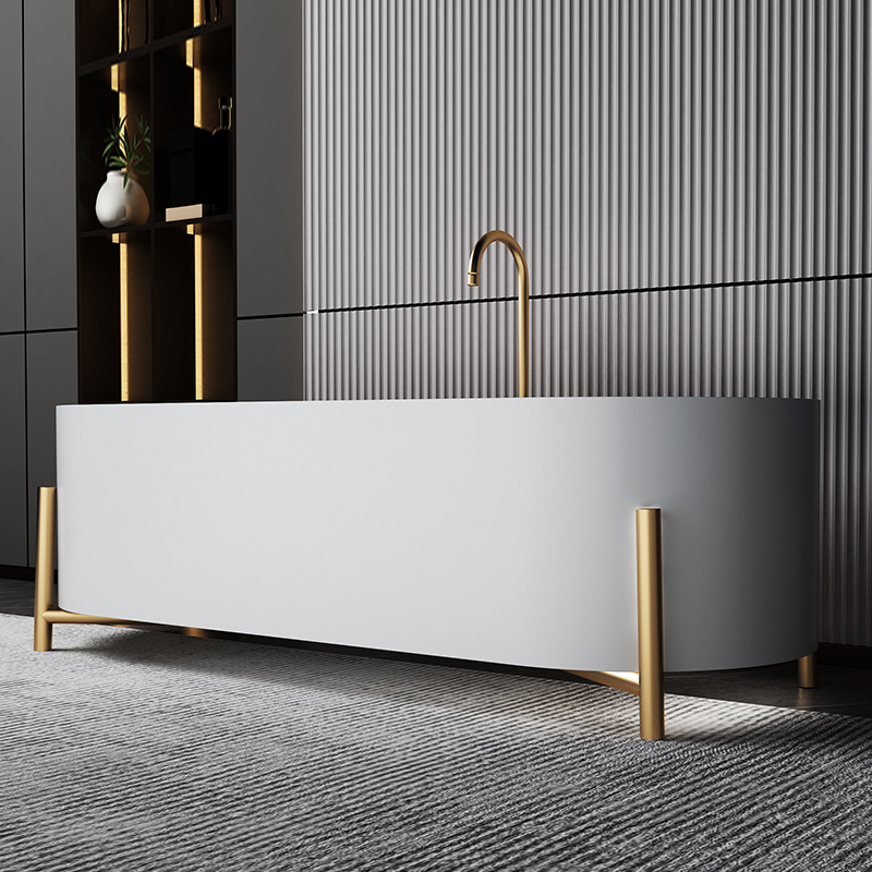 Modern popular bathroom, large sitting freestanding soaking bathtub, four-legged artificial stone bathtub